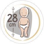 Muñeca de 37 cm. totalmente fabricada en España con materiales de gran calidad. Tiene el cuerpo completamente de plástico vinil. Lleva pañal, braguita y una lazada en la cabeza a juego con el portabebé incluido. Presentada en estuche. -